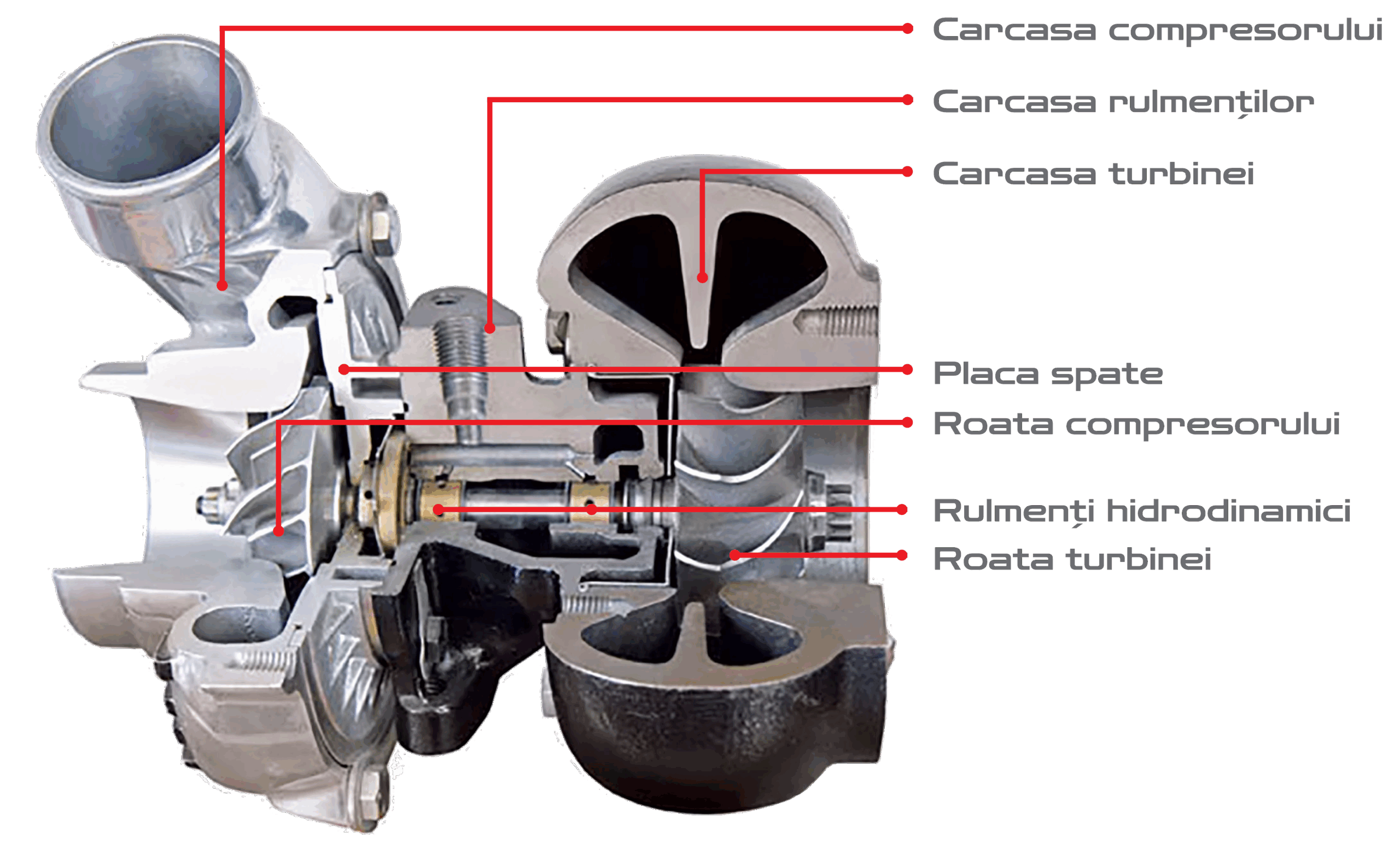 Auf der Turbinenseite treiben die Abgase die Schaufeln an, wodurch sich die Welle mit extrem hohen Geschwindigkeiten dreht – bis zu 300.000 Umdrehungen pro Minute oder 5.000 Umdrehungen pro Sekunde. Auf der Kompressorseite treibt die Welle mit derselben Geschwindigkeit die Schaufeln an, die Außenluft ansaugen, beschleunigen, verdichten und in den Motor leiten.